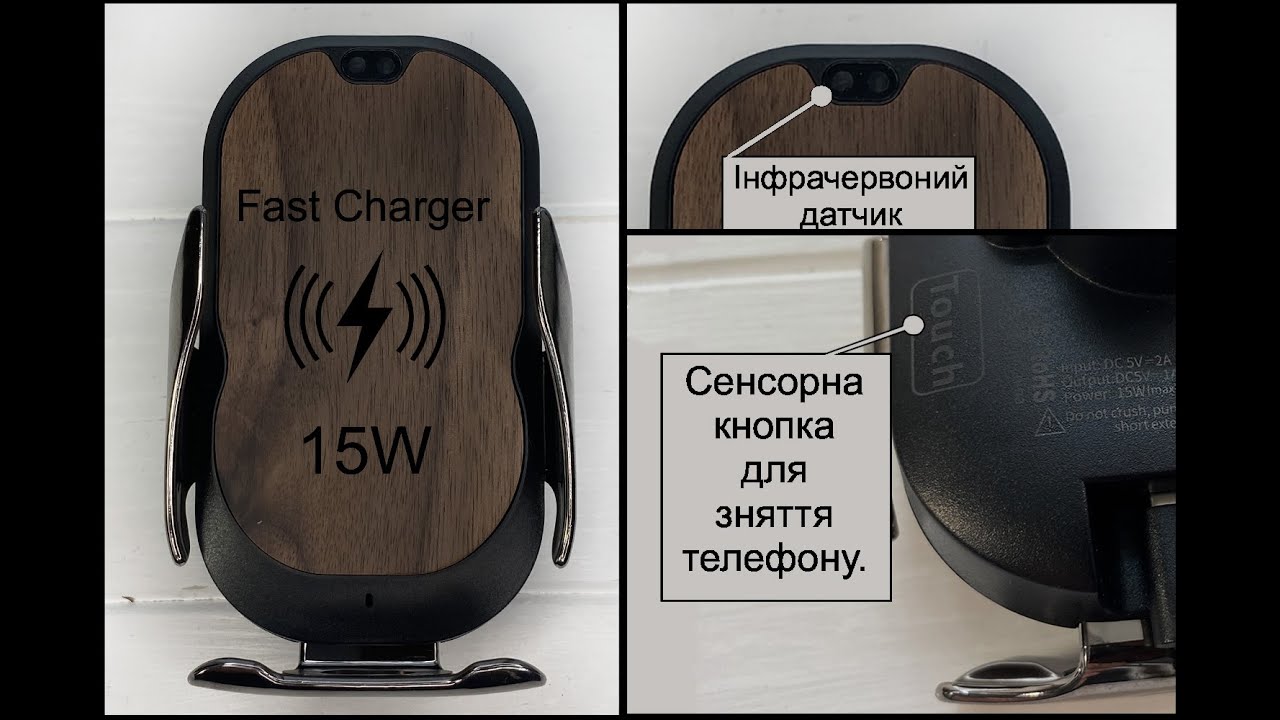 Автотримач автоматичний SkinWood Car - тримач для смартфона в авто з функцією швидкої бездротової зарядки.